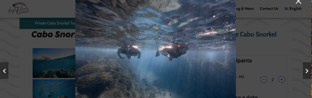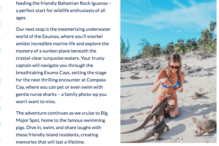 There are so many tour companies, and you have to stand out. Your website’s photos should show why you’re special. For example, Bahama Blue Water Adventures offers incredible Bahama Boat Tours that include snorkeling and exploring secluded islands. Travelers get to see amazing marine wildlife on their tours such as pigs, iguanas, nurse sharks and more, so of course this is something they should show off on their website. Their photos show not only people on the tours, but the guests interacting with incredible Bahamian wildlife during the experience.