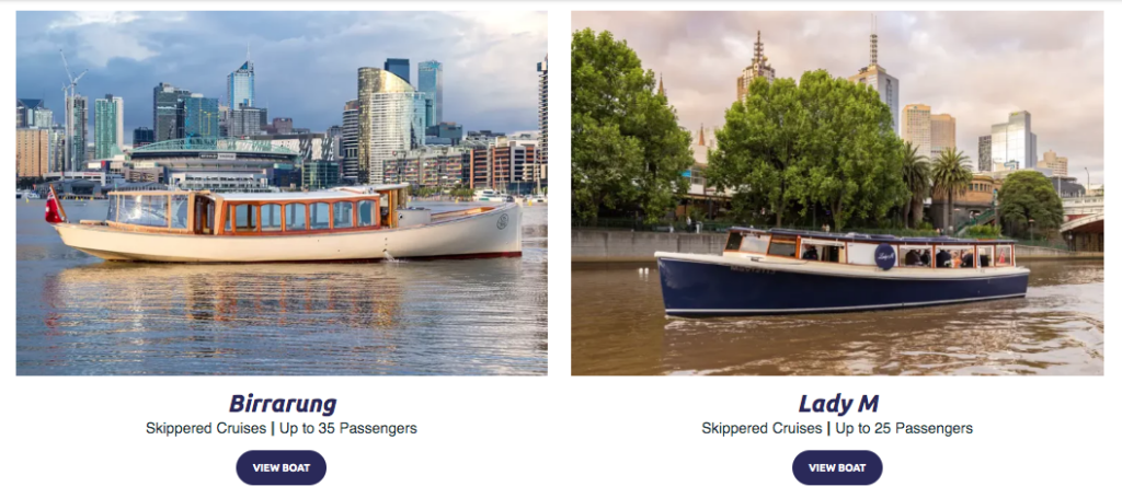If your tour is done with any type of essential gear, such as vehicles, bikes or boats, make sure to show them off on the website. People want to feel safe and secure, and they want to see that you have a modern vehicle or equipment that will be reliable on the tour, not some old beat-up bus that will break down or be unsafe. In the example below, Melbourne Boat Hire exhibits each of their vessels beautifully with high quality images showing off their clean, secure and well maintained fleet, with the bonus of a scenic background, and accompanied by the specifications of each boat.