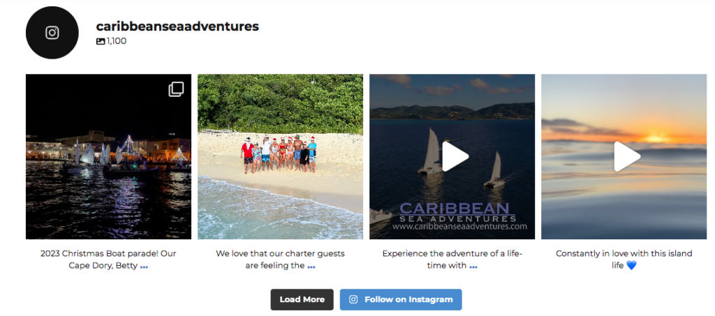 And finally, all websites should have user generated content in some form. A great way to do this is to have an Instagram feed on your site. With a third-party application like Regram, you can repost photos that your guests have taken onto your own account, which will then appear on your website. This is a feature that all TourismTiger sites are compatible with, like on Caribbean Sea Adventures website: