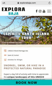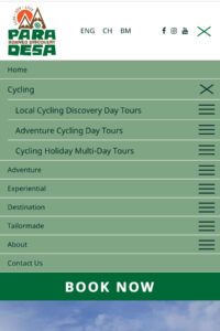 Navigation is key to optimising your site for mobile. Smaller screens can make it harder to find things so ensuring that actions are as clear as possible is vital to the success of your site on mobile. The size of the buttons is key to encouraging action and sales. At Tourism Tiger we pin a large BOOK NOW button to each product page so that when users are ready to buy, the action is right in front of them.