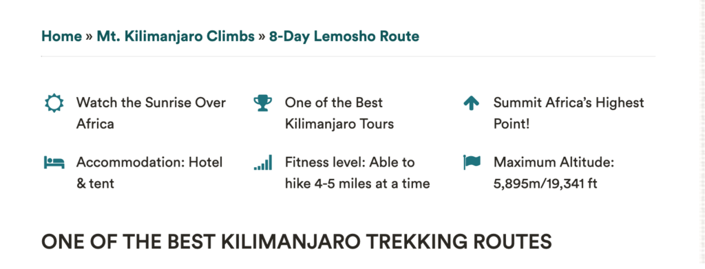 In addition to identifying the USPs for your business, you should also consider the USPs for each of your tours or services. When a potential guest clicks on a tour page, it is important that they are presented with easy-to-read and concise copy. The value of listing 3 to 4 USPs at the top of each tour page, again accompanied by icons, really helps to highlight what you are trying to sell in a quick and attractive way. Think about what makes that individual tour special, both in terms of your offerings and that of the market. Naturally, many of the same principles and questions used to help identify your company USPs can also be used for your tour USPs.