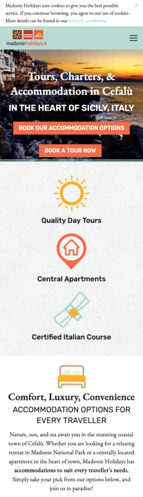 You’ve gotten your website set up with your tours, beautiful photos, and of course, booking links from your software of choice. When you scroll through your site on your computer, it looks great, it’s easy to use, and you wouldn’t trade it for the world. But then, when you’re caught out on a tour and you navigate to your site on your smartphone, your stomach drops. Everything is tiny and unreadable! You can’t see the photos or your menu very well, you have to desperately try to pinch to zoom in to read your content, and your thumbs are too big to tap on tiny links. What happened?(opens in a new tab)